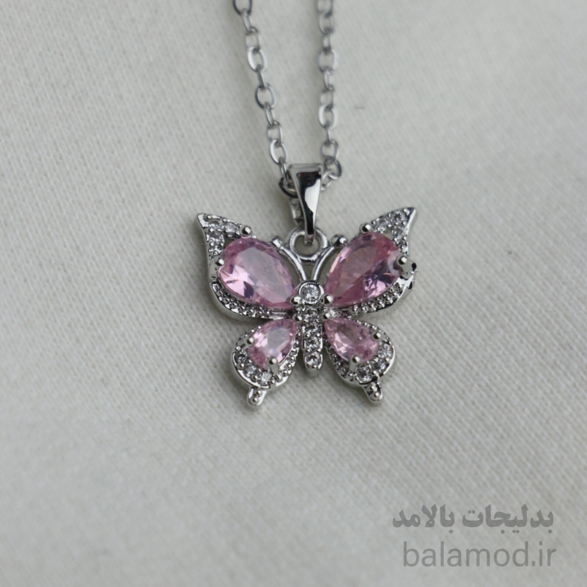 گردنبند زنانه پروانه طرح پینترستی نگینی