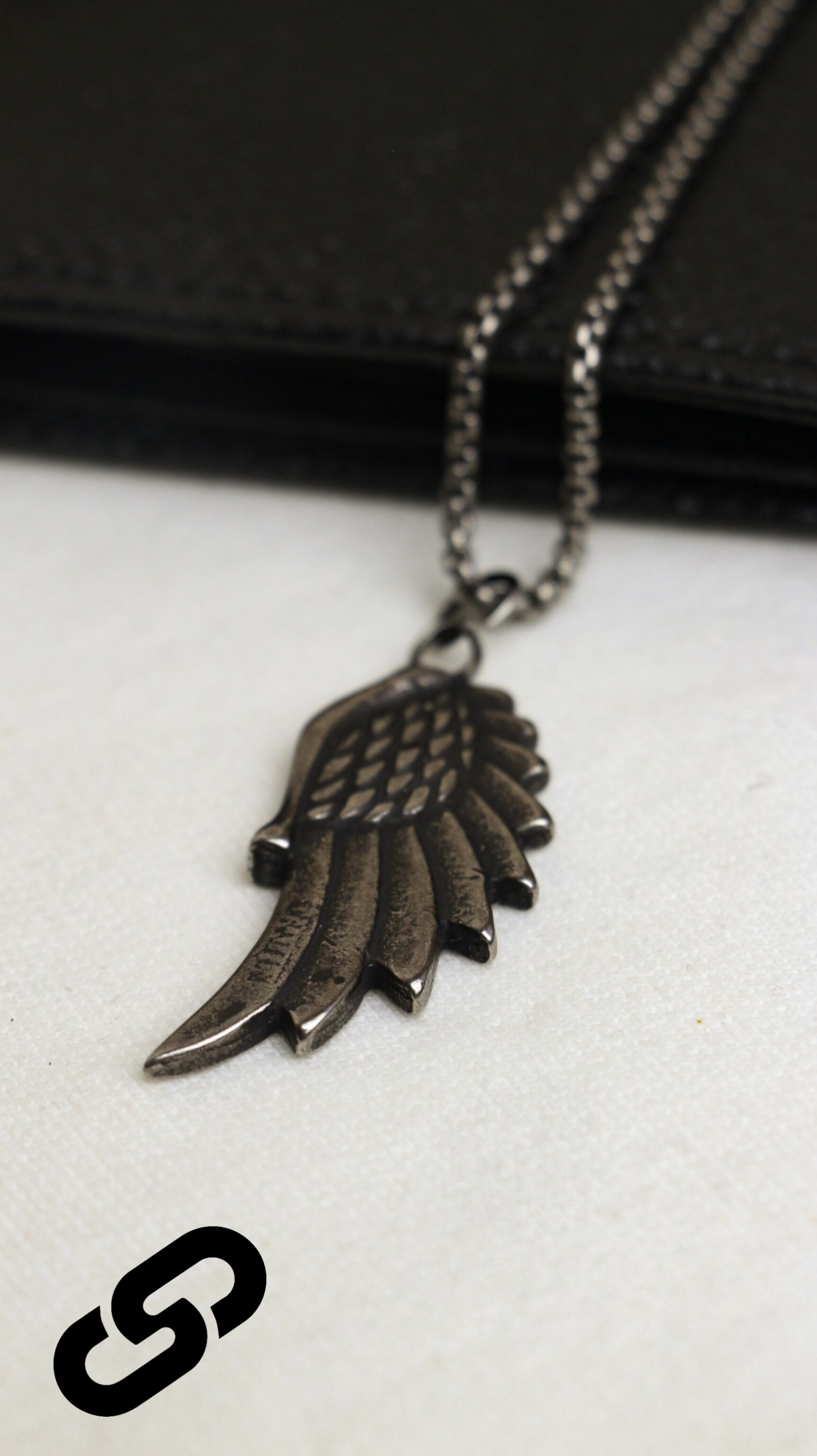 این گردنبند مردانه با طراحی نمادین و چشمنواز بال، الهام گرفته از هنر وایکینگی است و معنایی عمیق را با خود حمل میکند. ساخته شده از استیل ضد زنگ 316 با کیفیت بالا که ثبات رنگ آن تضمین شده است. زنجیر این گردنبند ۶۰ سانتیمتر طول دارد و استایلی بینظیر برای شما به ارمغان میآورد.