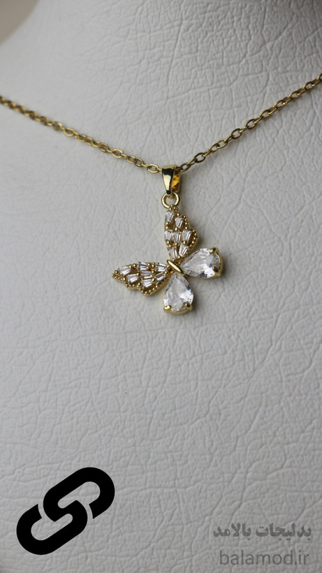 گردنبند زنانه طرح پروانه طلایی نگینی