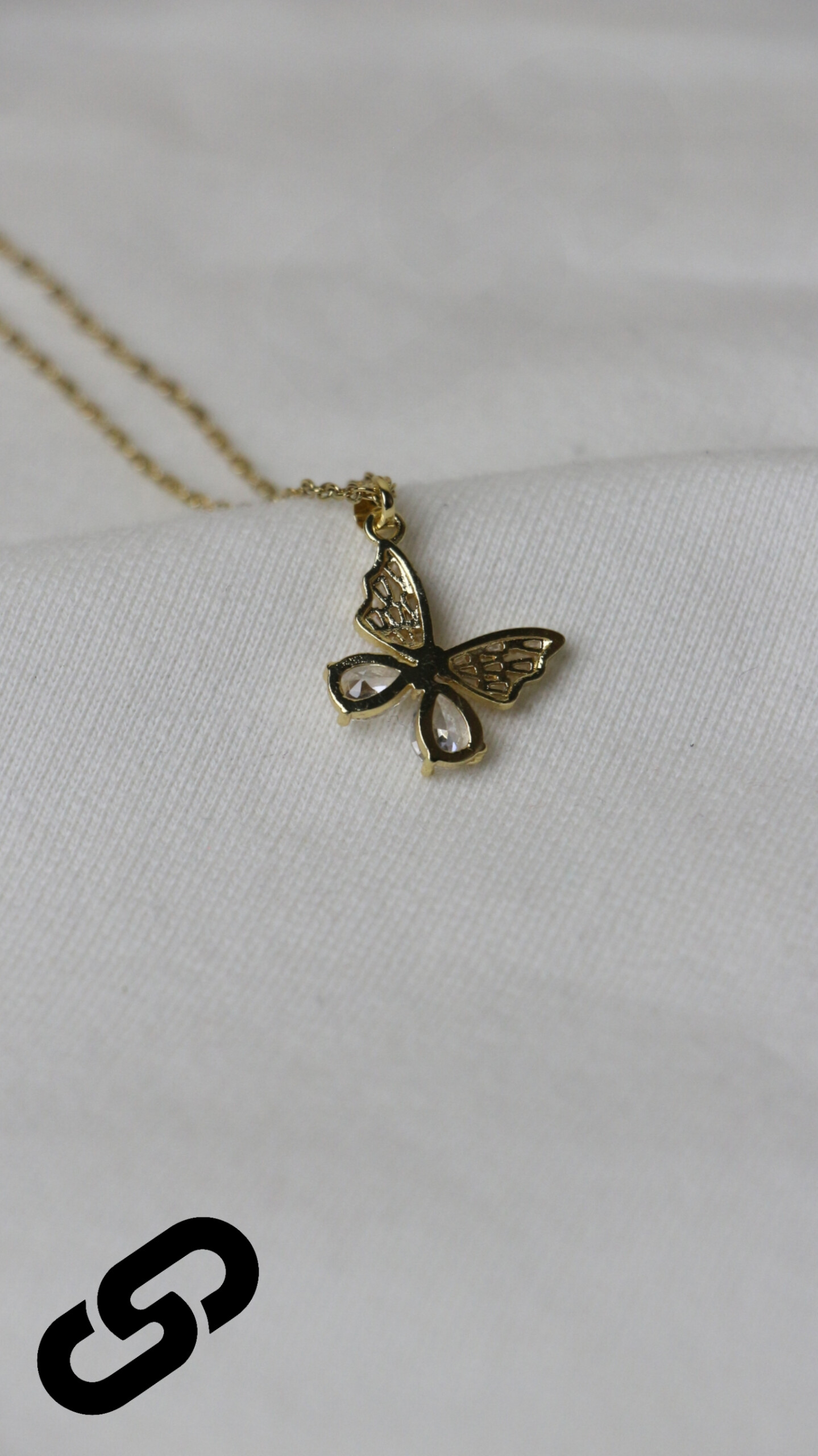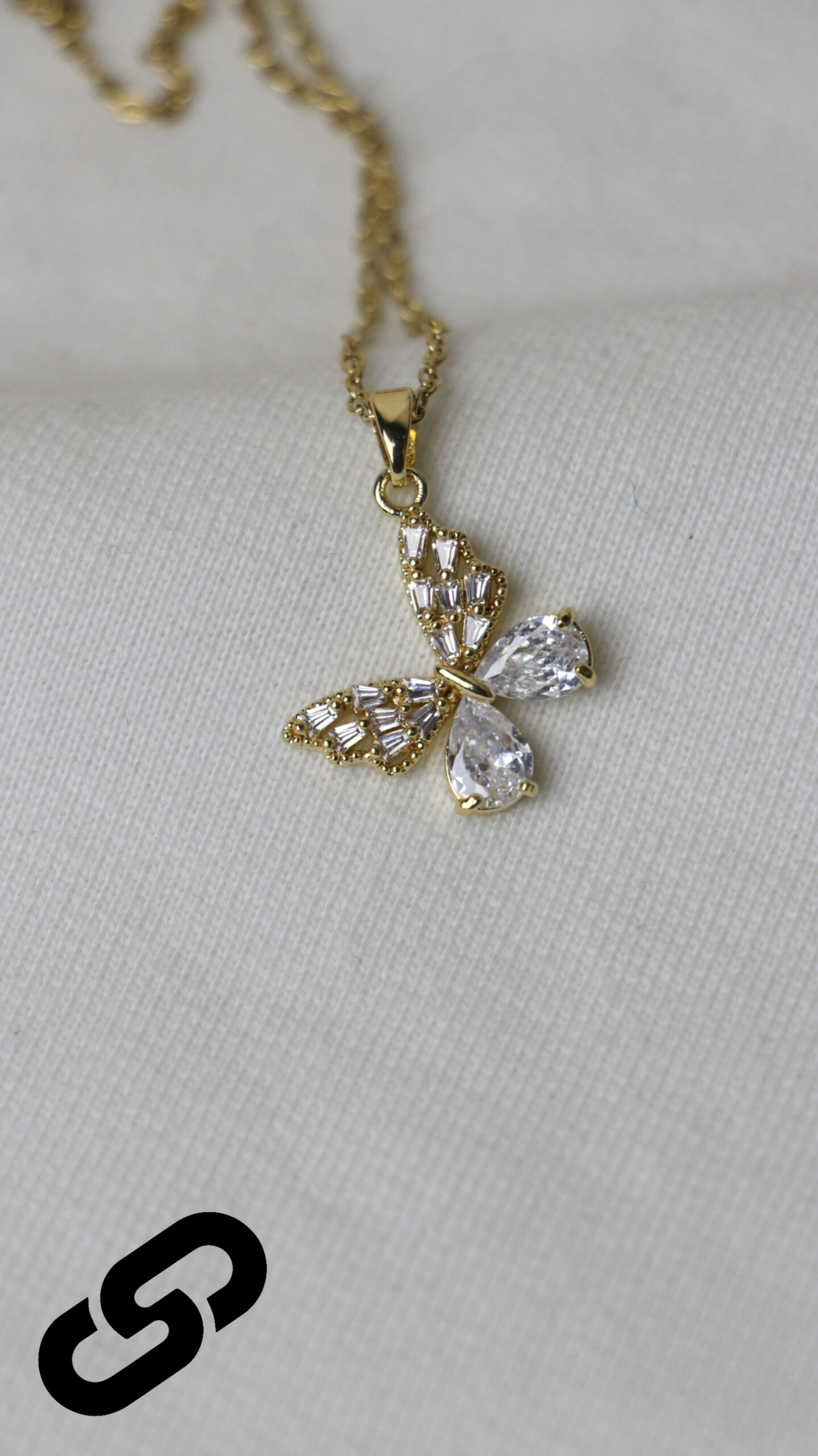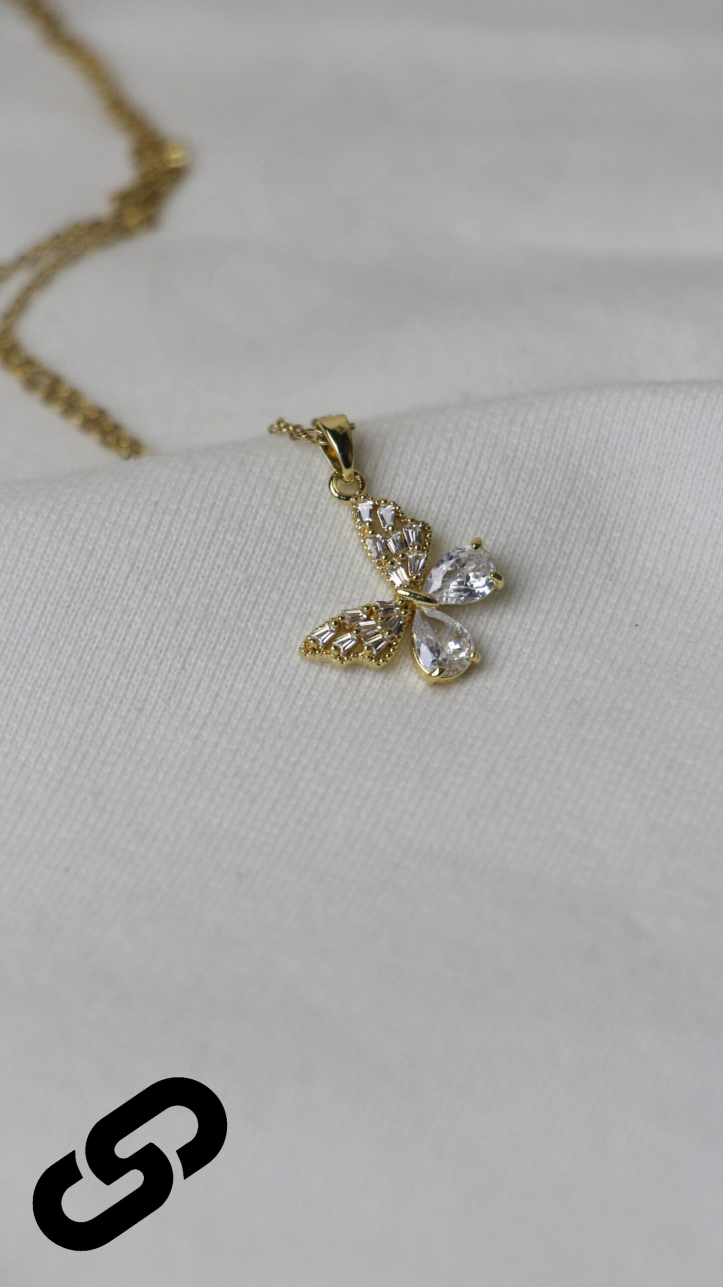 گردنبند زنانه طرح پروانه طلایی نگینی