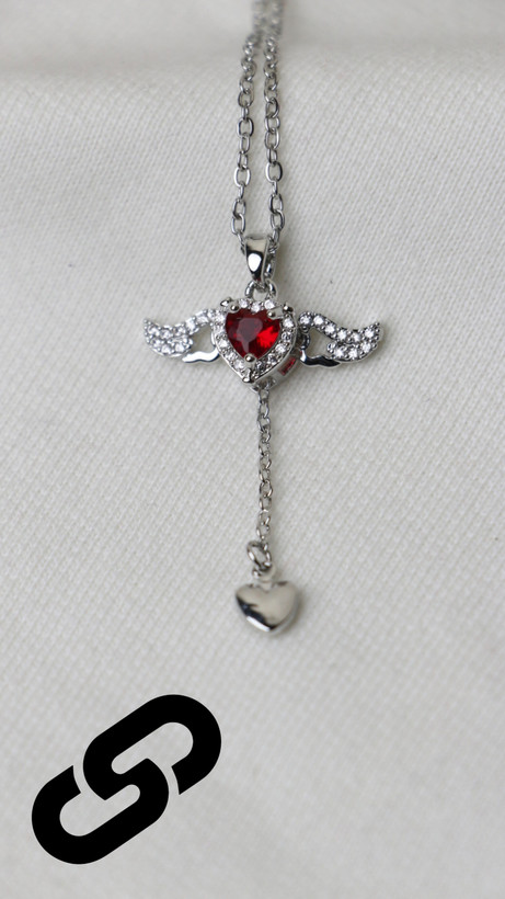 گردنبند زنانه طرح بال فرشته قرمز استیل