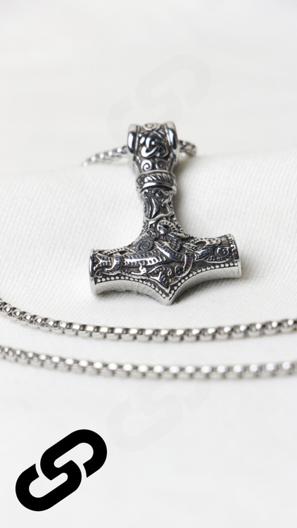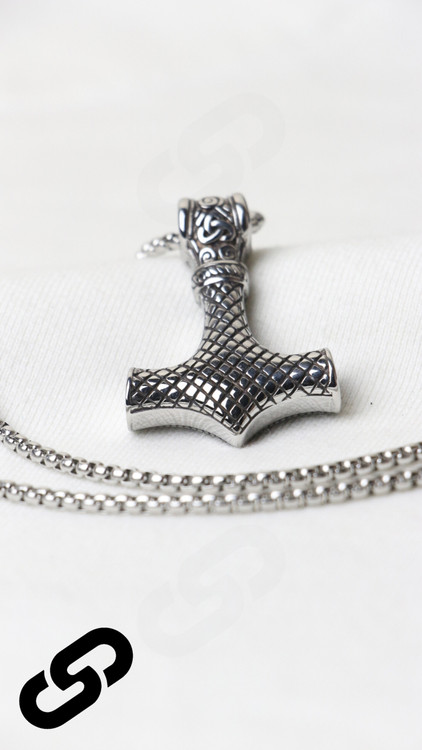 اگر به نمادهای اسطورهای و پرقدرت علاقهمند هستید، این گردنبند چکش ثور انتخابی خاص و متفاوت برای شماست. طراحی برگرفته از چکش معروف «ثور»، خدای رعد در اساطیر یونانی، با جزئیاتی ظریف و چشمنواز، روی بدنهای از استیل مقاوم و ماندگار اجرا شده.