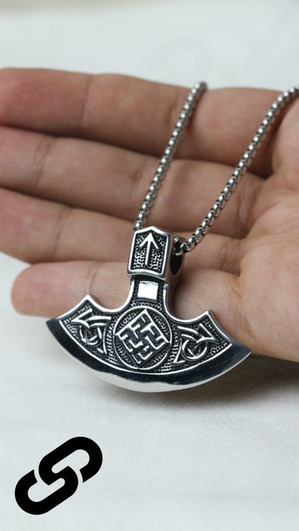 پلاک وایکینگی با طراحی الهامگرفته از سبک و طرح های اساطیر و سلاح های وایکینگی، ساختهشده از استیل 316 ضدحساسیت که بهخاطر دوام بالا و ثبات رنگ عالی، گزینهای ایدهآل برای استفادهی روزمره است.