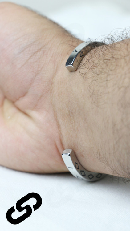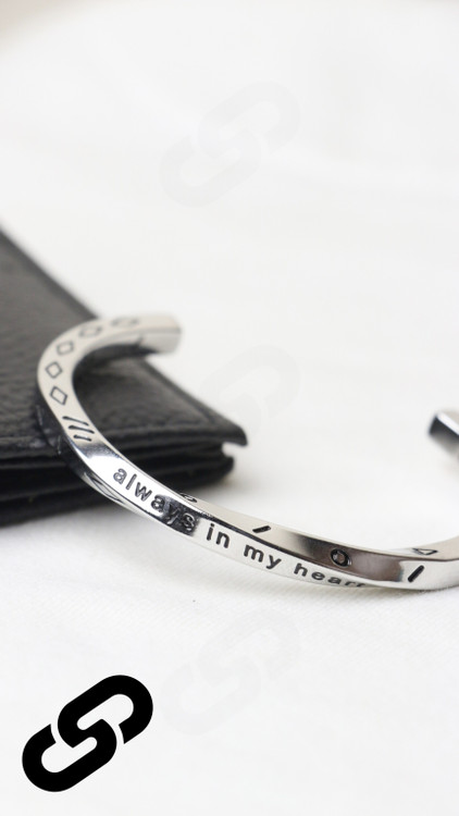 این دستبند مردانه با طراحی اسپرت و خاص از دیالوگ ماندگار سریال وایکینگی «رگنار» الهام گرفته شده و با نوشتهی "always in my heart" حس عمیق تعلق و عشق را منتقل میکند. طراحی شیک، جنس استیل مقاوم و غیرقابل انعطاف، آن را به گزینهای عالی برای آقایان با سلیقه خاص تبدیل کرده است. همچنین بهعنوان ست پارتنری نیز کاربرد دارد. مناسب مچ تا ۲۰ سانتیمتر.