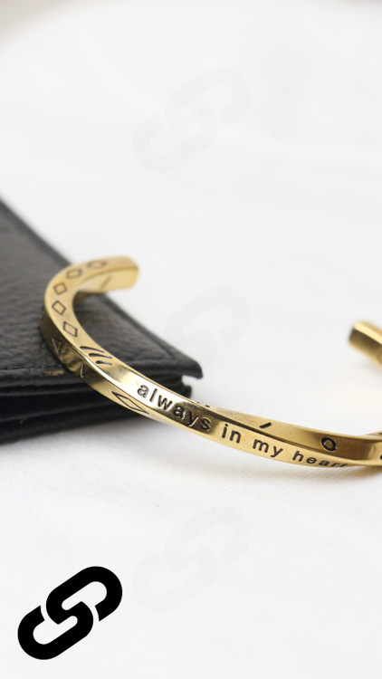 این دستبند مردانه با طراحی اسپرت و خاص از دیالوگ ماندگار سریال وایکینگی «رگنار» الهام گرفته شده و با نوشتهی "always in my heart" حس عمیق تعلق و عشق را منتقل میکند. طراحی شیک، جنس استیل مقاوم و غیرقابل انعطاف، آن را به گزینهای عالی برای آقایان با سلیقه خاص تبدیل کرده است. همچنین بهعنوان ست پارتنری نیز کاربرد دارد. مناسب مچ تا ۲۰ سانتیمتر.