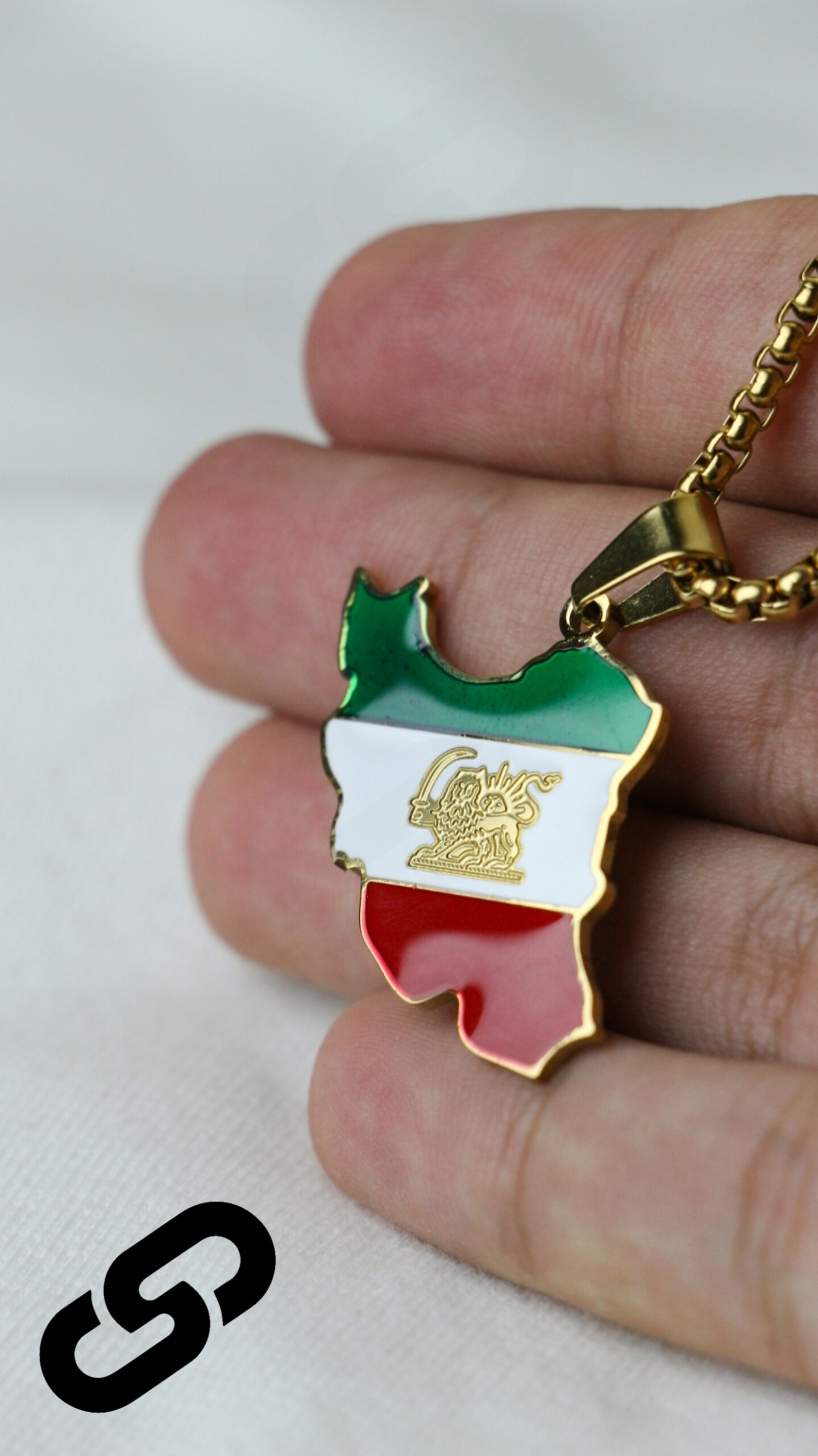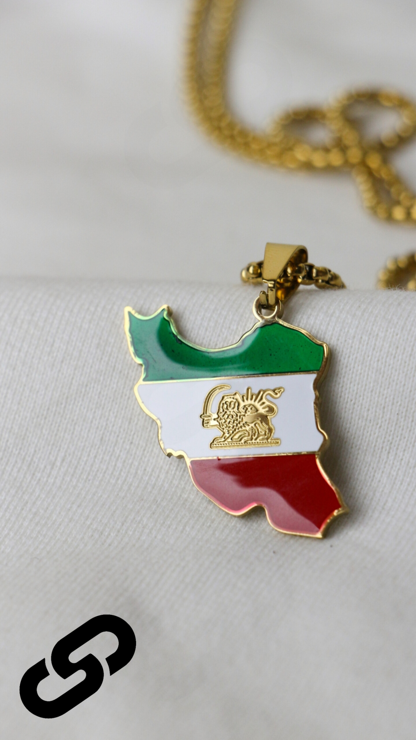 این گردنبند خاص، ترکیبی بینظیر از اصالت، هویت و شکوه ایرانیست. پلاک به شکل نقشه ایران طراحی شده و با رنگهای سهگانه پرچم ملی (سبز، سفید، قرمز) پوشیده شده که نمایانگر سرزمین، صلح و خون دلیران این مرز و بوم است. در مرکز آن، نماد شیر و خورشید – یکی از اصیلترین و کهنترین نشانهای ایرانی – با ظرافتی چشمنواز خودنمایی میکند.