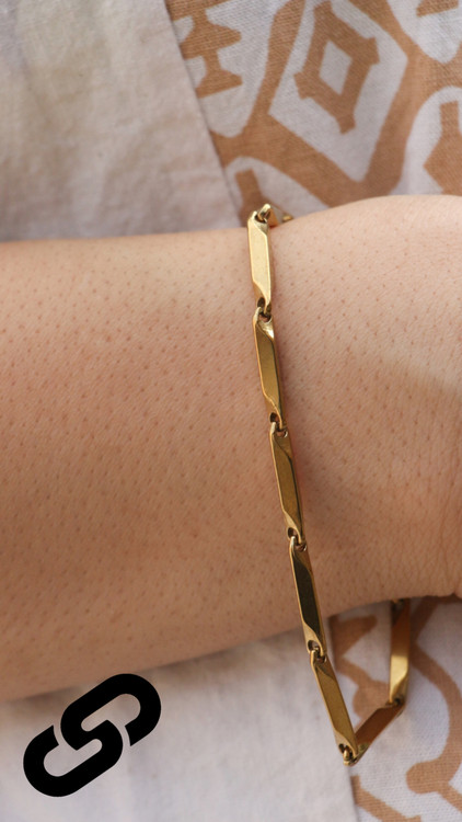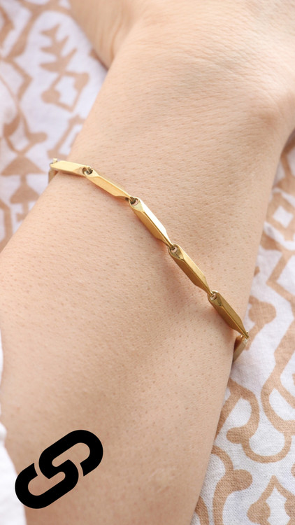 دستبند زنانه مدل کبریتی با طراحی مینیمال، ساخته شده از استیل ضدزنگ با آبکاری طلایی رنگ ثابت. این دستبند سبک و ظریف، انتخابی عالی برای استفاده روزمره یا ست کردن با استایلهای رسمی و نیمهرسمی است.