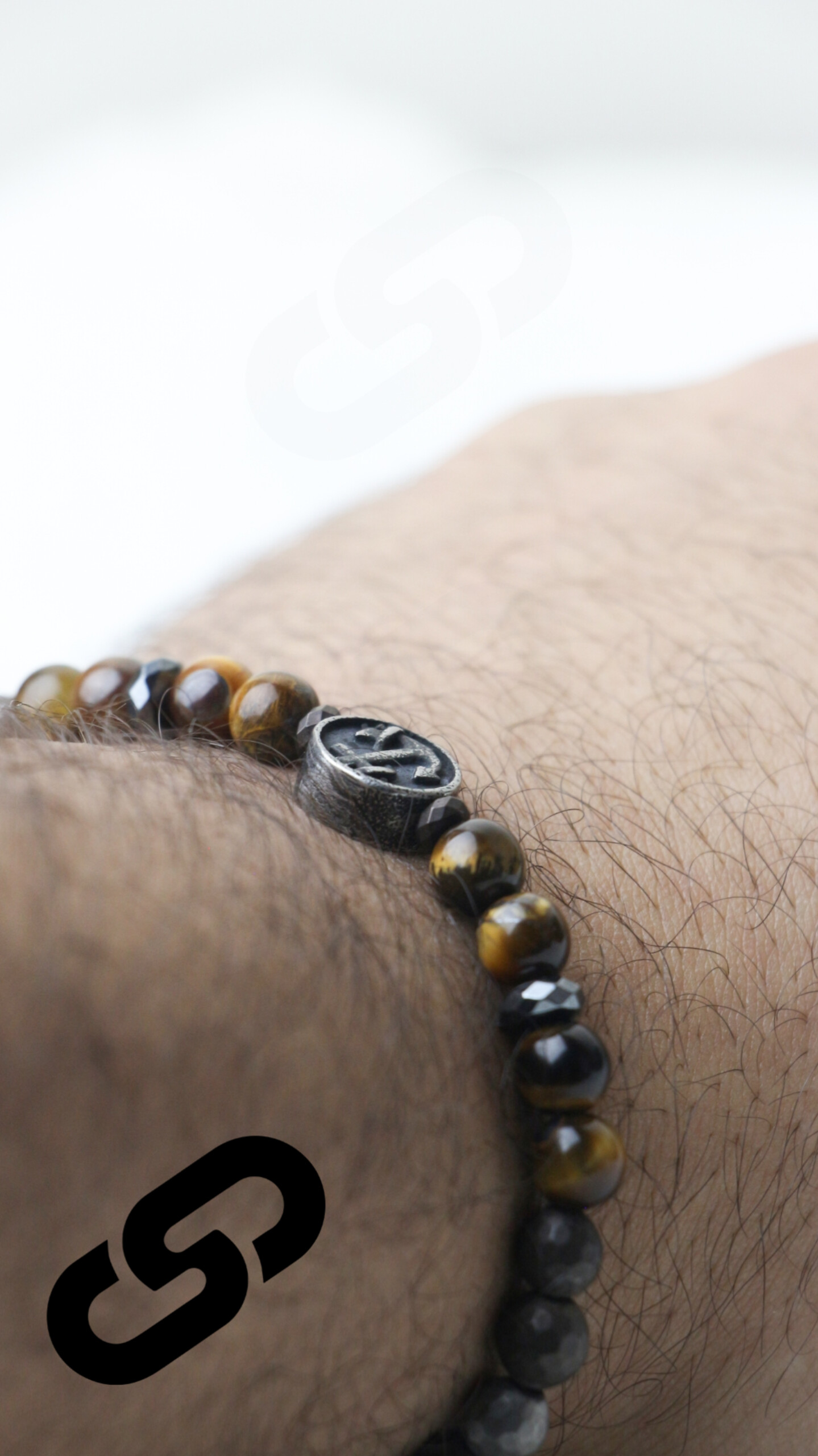 این دستبند از ترکیب سنگهای گرد کوچک چشم ببر و هماتیت ساخته شده است که علاوه بر زیبایی چشمگیر، خواص انرژیبخشی و آرامشبخش نیز دارد.