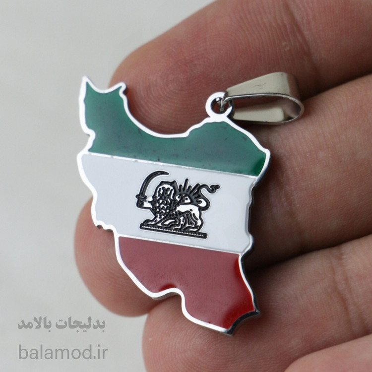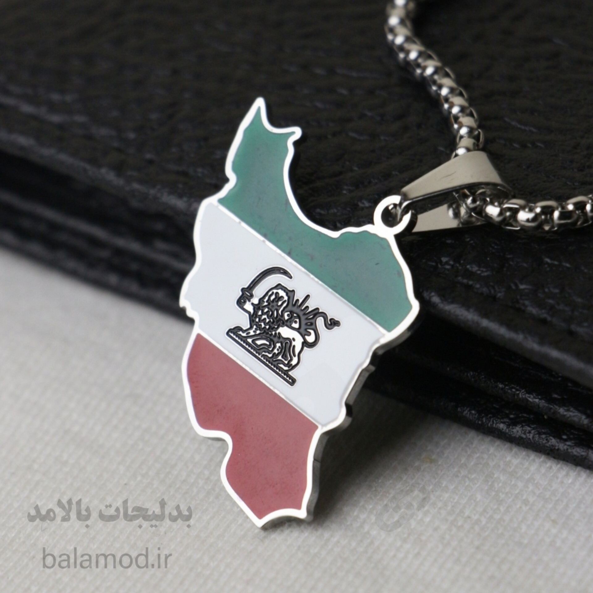 گردنبند استیل نقشه ایران با نماد شیر و خورشید