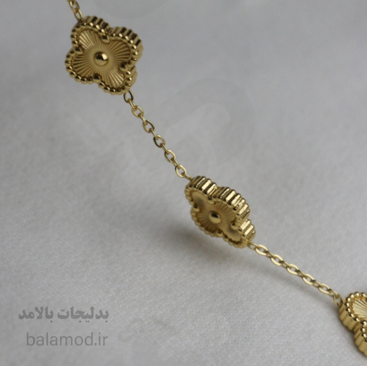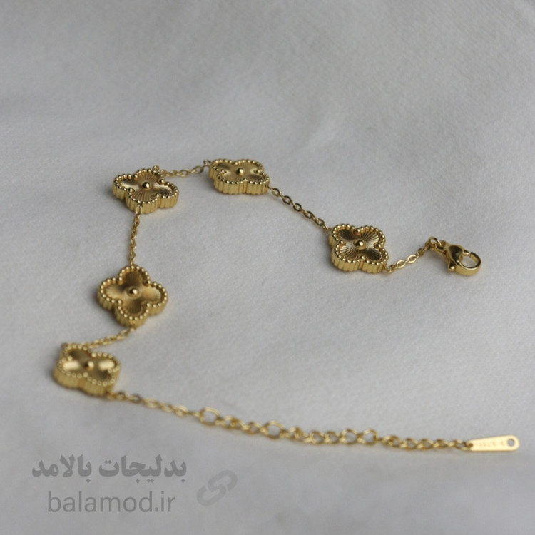 دستبند زنانه طرح ونکلیف، انتخابی شیک و ظریف برای خانمهایی است که به استایلهای کلاسیک و خاص علاقه دارند. این مدل از استیل با کیفیت، ساخته شده و رنگ طلایی درخشان آن، جلوهای لوکس و چشمنواز به دستان شما میدهد.