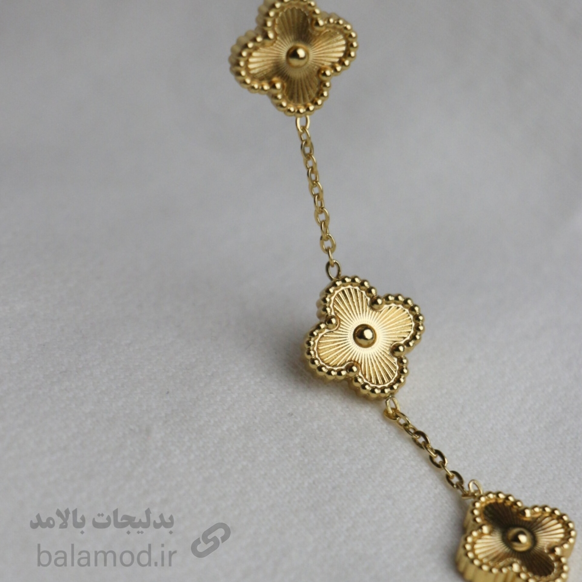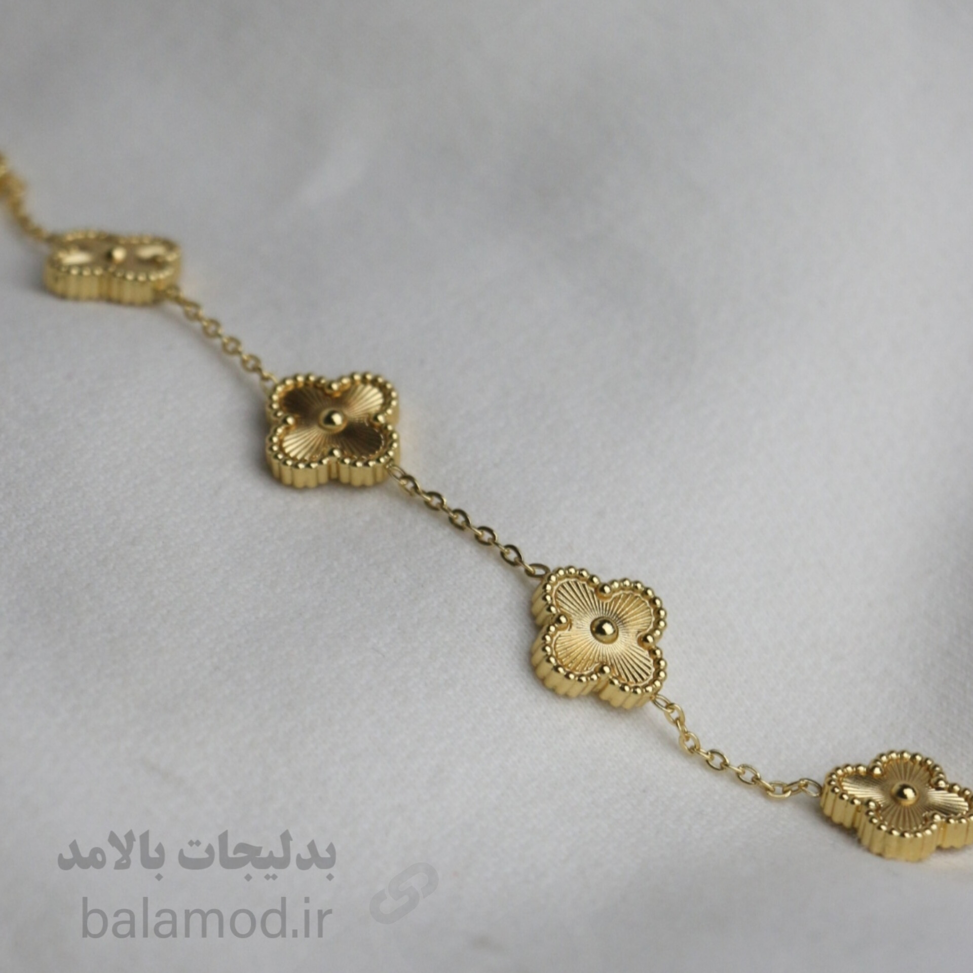 دستبند زنانه طرح ونکلیف، انتخابی شیک و ظریف برای خانمهایی است که به استایلهای کلاسیک و خاص علاقه دارند. این مدل از استیل با کیفیت، ساخته شده و رنگ طلایی درخشان آن، جلوهای لوکس و چشمنواز به دستان شما میدهد.