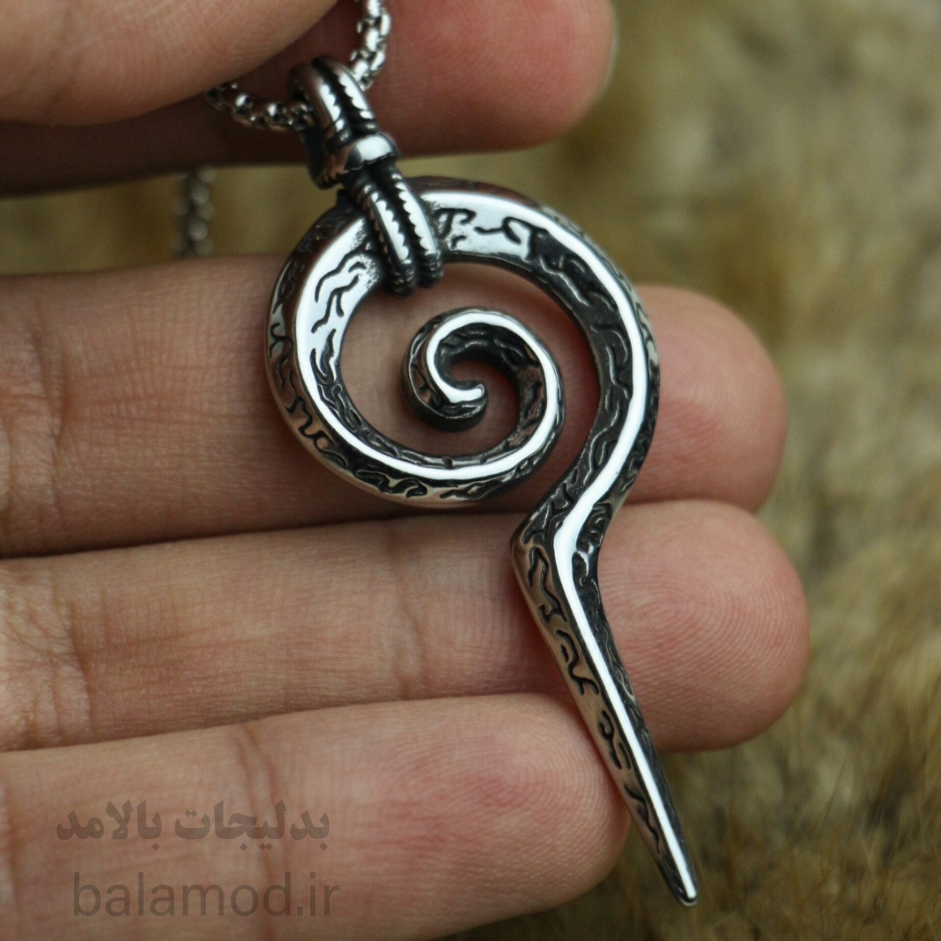 گردنبند استیل طرح مارپیچ، الهامگرفته از یکی از کهنترین نمادهای شناختهشده در فرهنگهای باستانی.